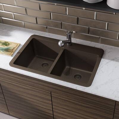 Special values + see all. Convenient dual mount configuration allows you to install it as. Franke sink, onyx granite double bowl sink, 33 top mount sink. Special values + see all. Thinking of something more modern? Get free shipping on qualified brown kitchen sinks or buy online pick up in store today in the kitchen department. Kraus bellucci workstation 33 in. Buy cambridge shaker assembled 24x34.5x24.5 in. 5% coupon applied at checkout. Brown kitchen sinks (269) brown bathroom sinks (210) brown sink & faucet sets (186) brown drains & strainers (42) brown bar sinks (37) brown soap dispensers (14) brown sink accessories (14) brown utility sinks (4) Granite sinks in darker tones of black and brown become an instant focal point. Kohler iron tones 33 drop in double basin cast iron kitchen sink. We also added geometric backsplash tiles and light sconces.